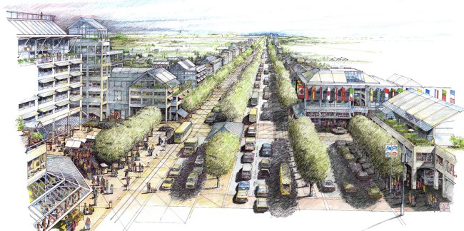 Thiết kế đô thị là kiến tạo nơi chốn. Bản vẽ minh họa của dự án Thiết kế tái thiết khu Forest Lawn – Giải thưởng New Urbanism Charter Award 2006