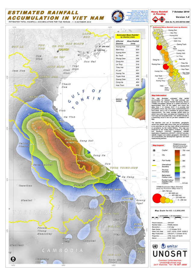 Source(s): Rainfall Data: TRMM (NASA) Resolution: 0.25 deg Date Series: 1 - 6 October 2010 Other GIS Data: GIST, USGS, ESRI, GEBCO Map Production: UNOSAT (7 October 2010) Analysis: UNOSAT