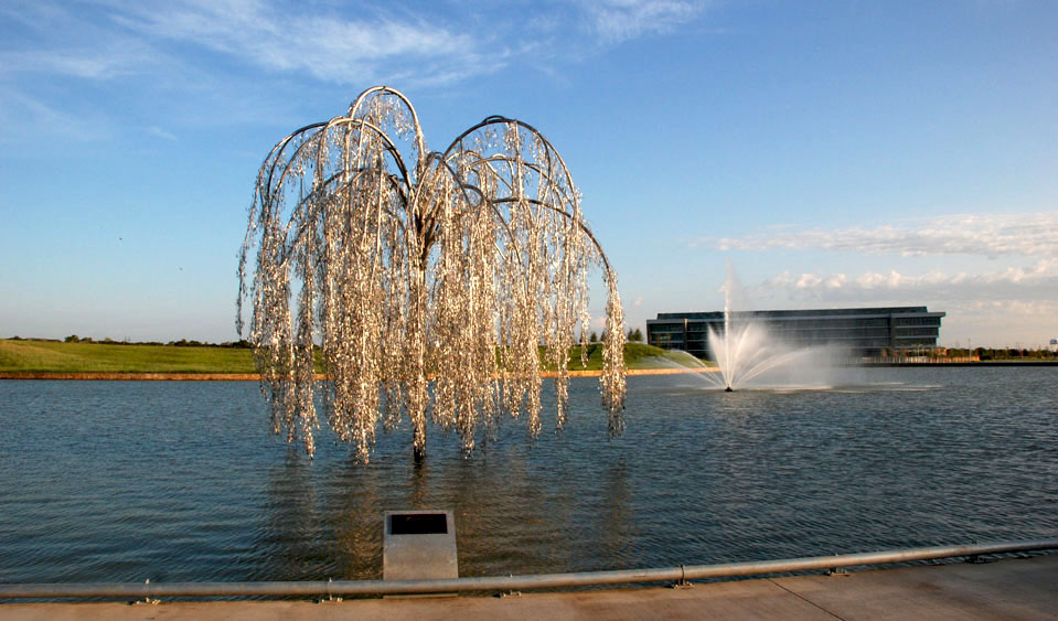 Hình 3: Cây Dương Liễu (Willow Tree) được xây dựng tại Công viên Trung tâm mới của thành phố Grand Prairie (bang Texas, Hoa Kỳ) sử dụng 80.000 chiếc lá làm từ vỏ ốc.