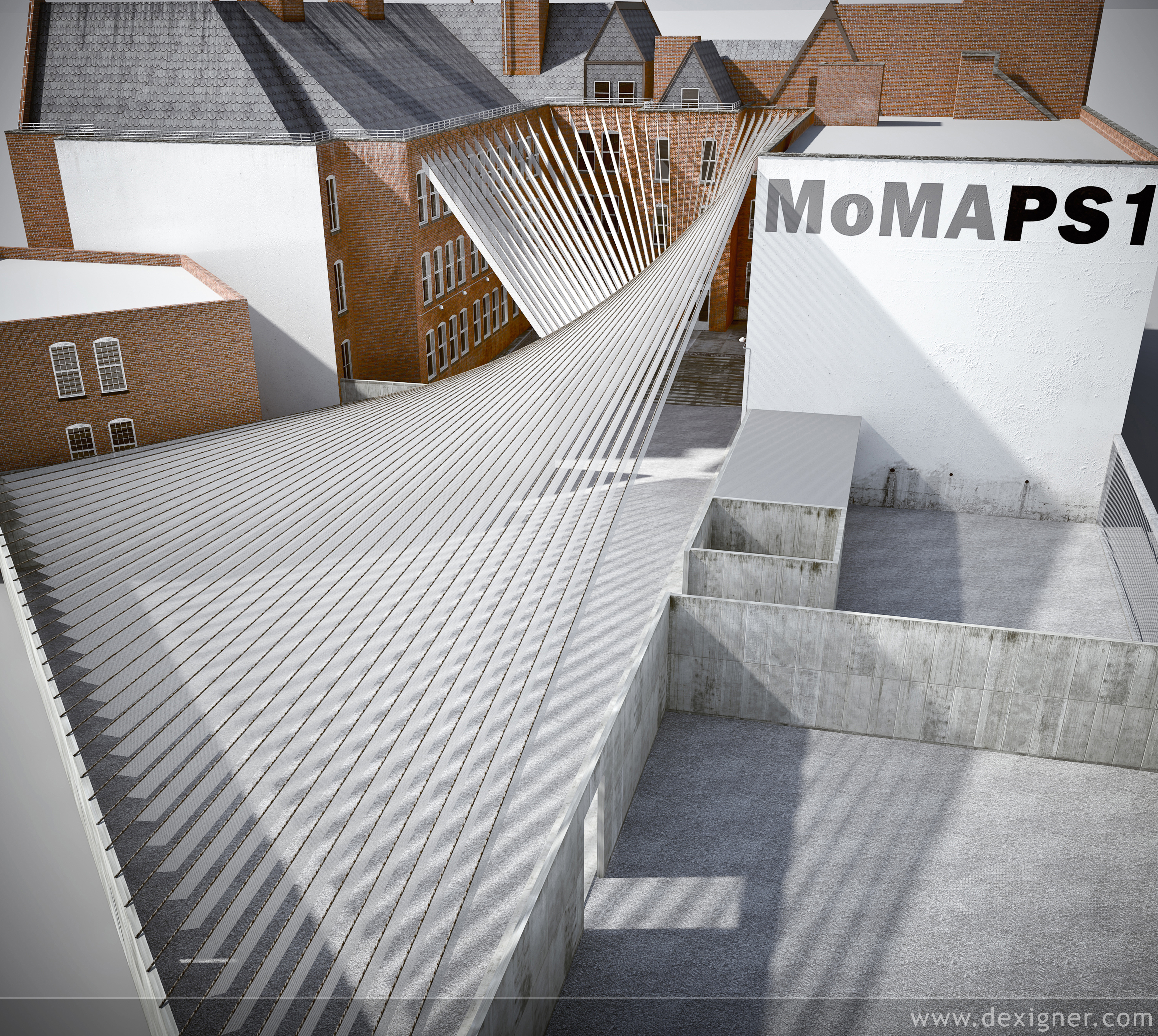 Vào một buổi chiều hè oi bức vừa qua, trên đường ra sân bay sau chuyến đi tường thuật ở New York, tôi đã dừng chân tại Trung tâm PS1, một chi nhánh tại khu Queens của Bảo tàng Nghệ thuật Hiện đại (MoMA) để xem một triển lãm sắp đặt của các kiến trúc sư từ công ty Interboro Partners. “Chờ” (Holding Pattern) là tác phẩm đoạt giải Chương trình Kiến trúc sư trẻ (YAP) thường niên lần thứ 12 của PS1 năm nay – một cuộc thi cho phép mỗi năm một đơn vị có cơ hội bày trí sân bảo tàng trong nhiều tuần bằng một ngân sách eo hẹp.
