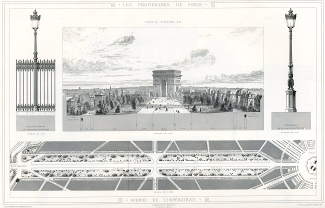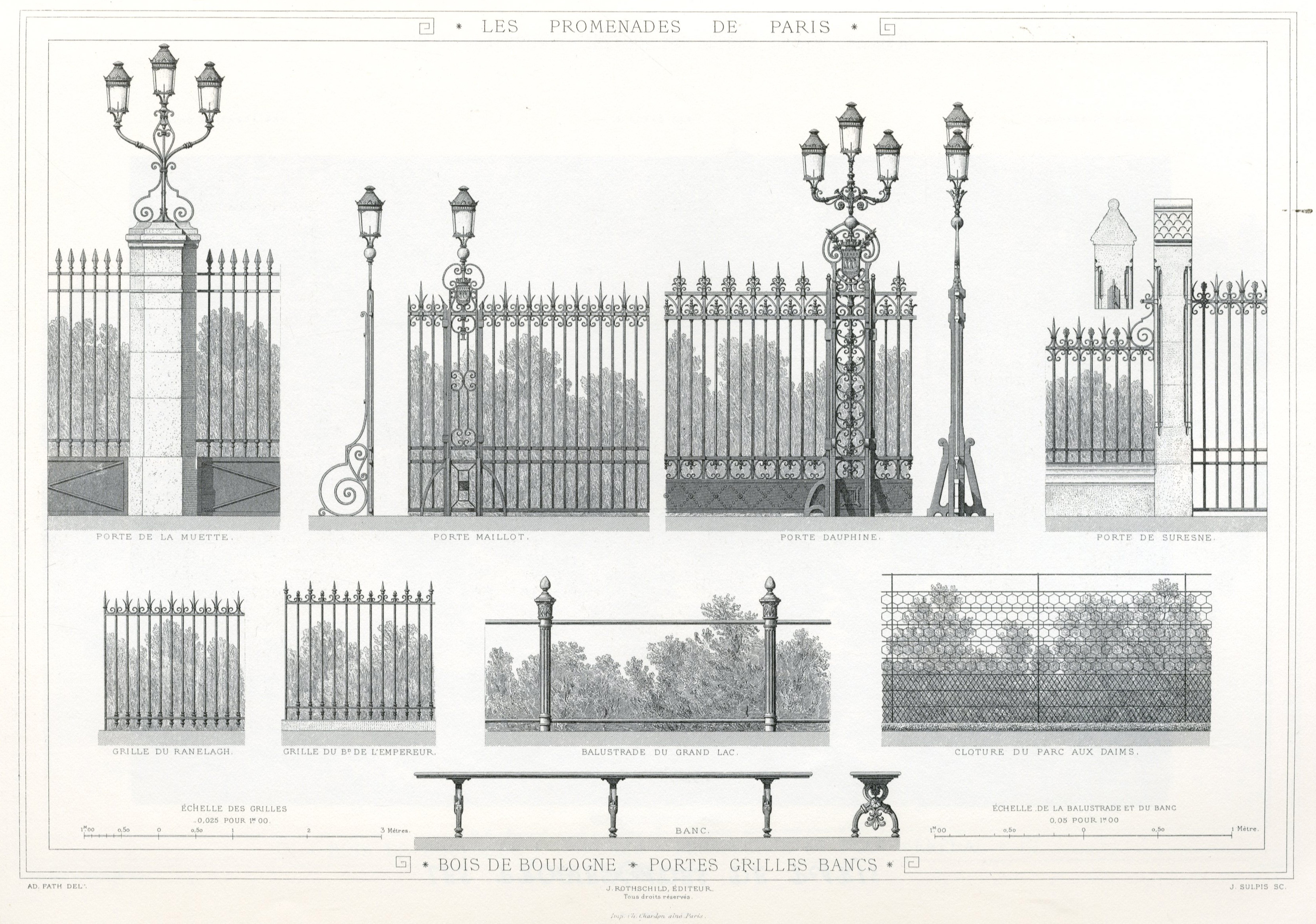 - Alphand, A. (1984). Les promenades de Paris: histoire–description des embellissements–dépenses de création et d’entretien des Bois de Boulogne et de Vincennes, Champs-Élysées–Parcs–squares–boulevards–places plantées, Étude sur l’art des jardins et arboretum, 487 gravures sur bois, 80 sur acier, 23 chromolithographies. Princeton, NJ: Princeton Architectural Press.