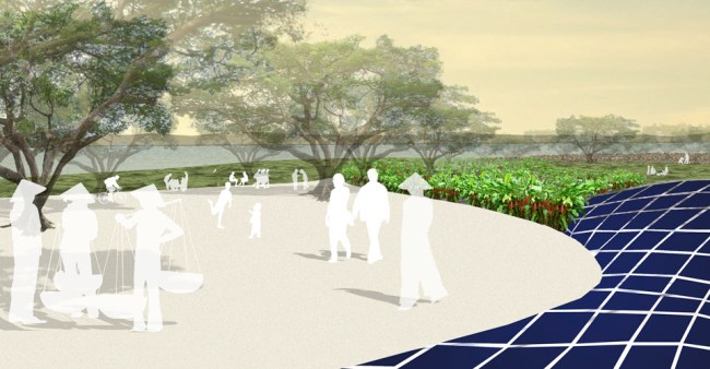 Một “Bãi biển thủy tin” nằm phía trước bờ sông. Một loạt các bập tam cấp được xây dựng với đề xuất dọc theo bờ sông và cung cấp khả năng tiếp cận tới các chợ nổi, bến phà và cả taxi nước.