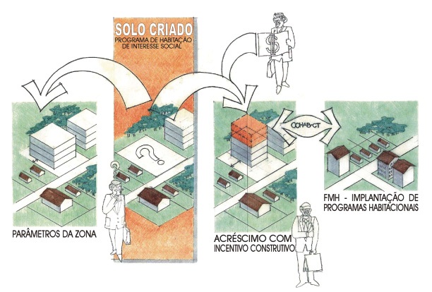 Thành phố đã chuyển đổi những khu đất trống phía dưới đường dây điện cao thế ở phía nam thành “đường dây việc làm” tạo cơ hội cho người dân làm ăn kinh doanh và thúc đẩy tăng trưởng kinh tế địa phương. Hai lò ấp xã hội hỗ trợ đào tạo và cơ sở vật chất cần thiết để lập nghiệp, và kết quả 12 xưởng kinh doanh đã được ra đời (Guimarães 2009). Những cơ sở này còn hỗ trợ nâng cao năng lực kinh doanh. Những khu đất có chủ nhưng không được khai thác hiệu quả được giải phóng, người dân ở đó được tái định cư và giao thông công cộng được thiết lập; vốn là những biện pháp thể hiện tiến trình phục hồi đất đai (land recovery) (Hattori 2004).