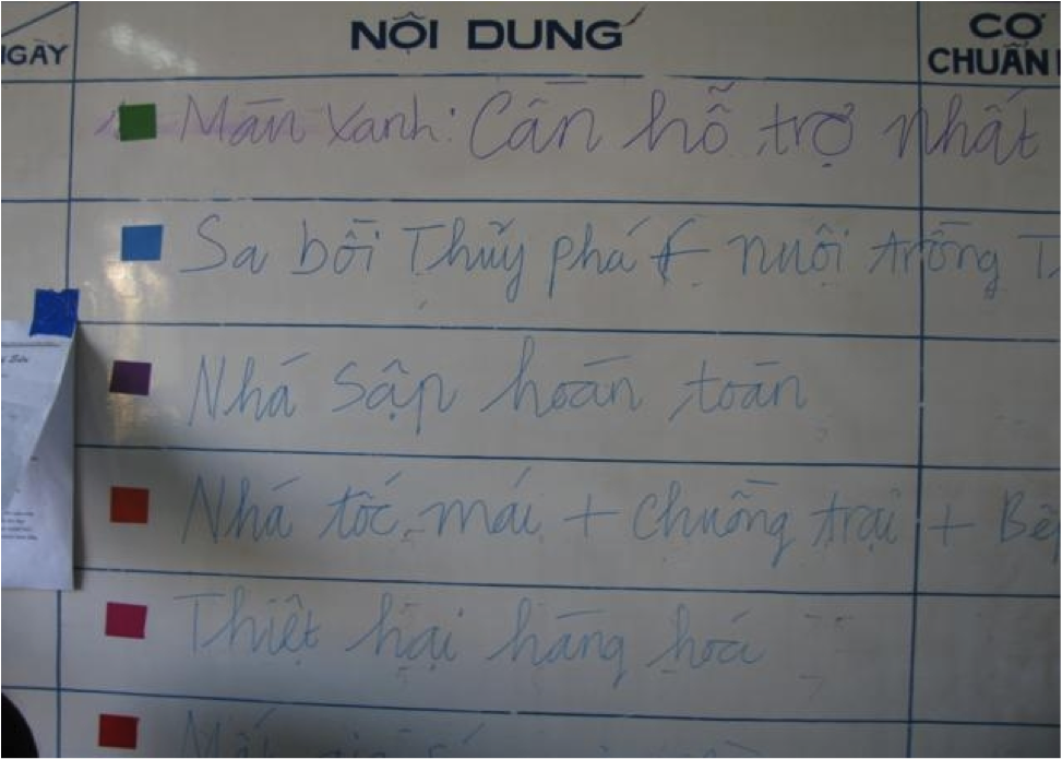 15. Người dân cùng nhau quyết định việc  phân chia các lô đất ( tại khu tái định cư) 16.Hội thảo  về quy hoạch và  thiết kế nhà ở với mô hình bằng bìa