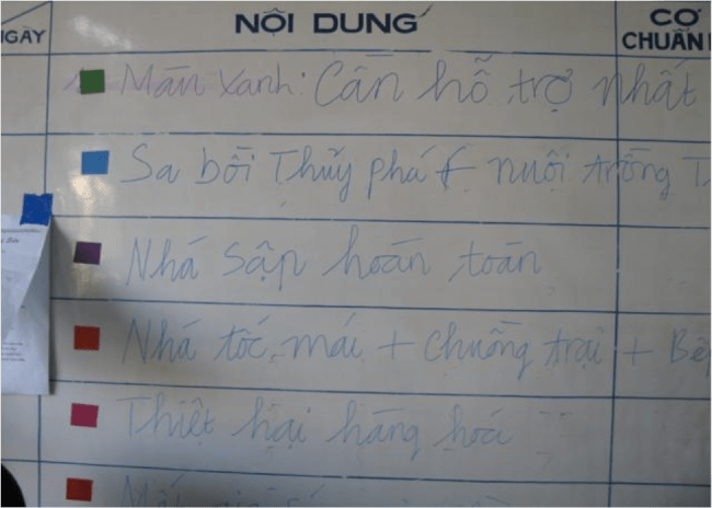 2. Mẫu điều tra cơ bản: Gồm tóm tắt những thông tin không thể thể hiện được hết trên bản đồ, ví dụ như số hộ gia đình, số hộ bị ngập úng, thiếu nhà vệ sinh….