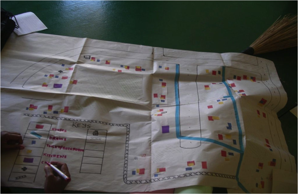 1.Bắt đầu bằng  việc mà những người dân trong cộng đồng có  thể làm cùng nhau: sửa lại đường mương thoát nước! 2.Người dân tại làng Veidogo lập bản đồ về khu dân cư của mình