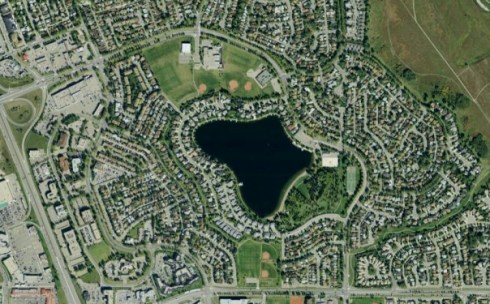 Mô hình Đơn vị khu dân cư được áp dụng đại trà trong quy hoạch đô thị ở Bắc Mỹ như ví dụ về một khu dân cư ngoại ô Canada này. Nguồn: http://www.bing.com/maps