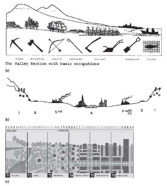 Bản vẽ của Patrick Geddes (a), Team 10 (b), và New Urbanism (c)