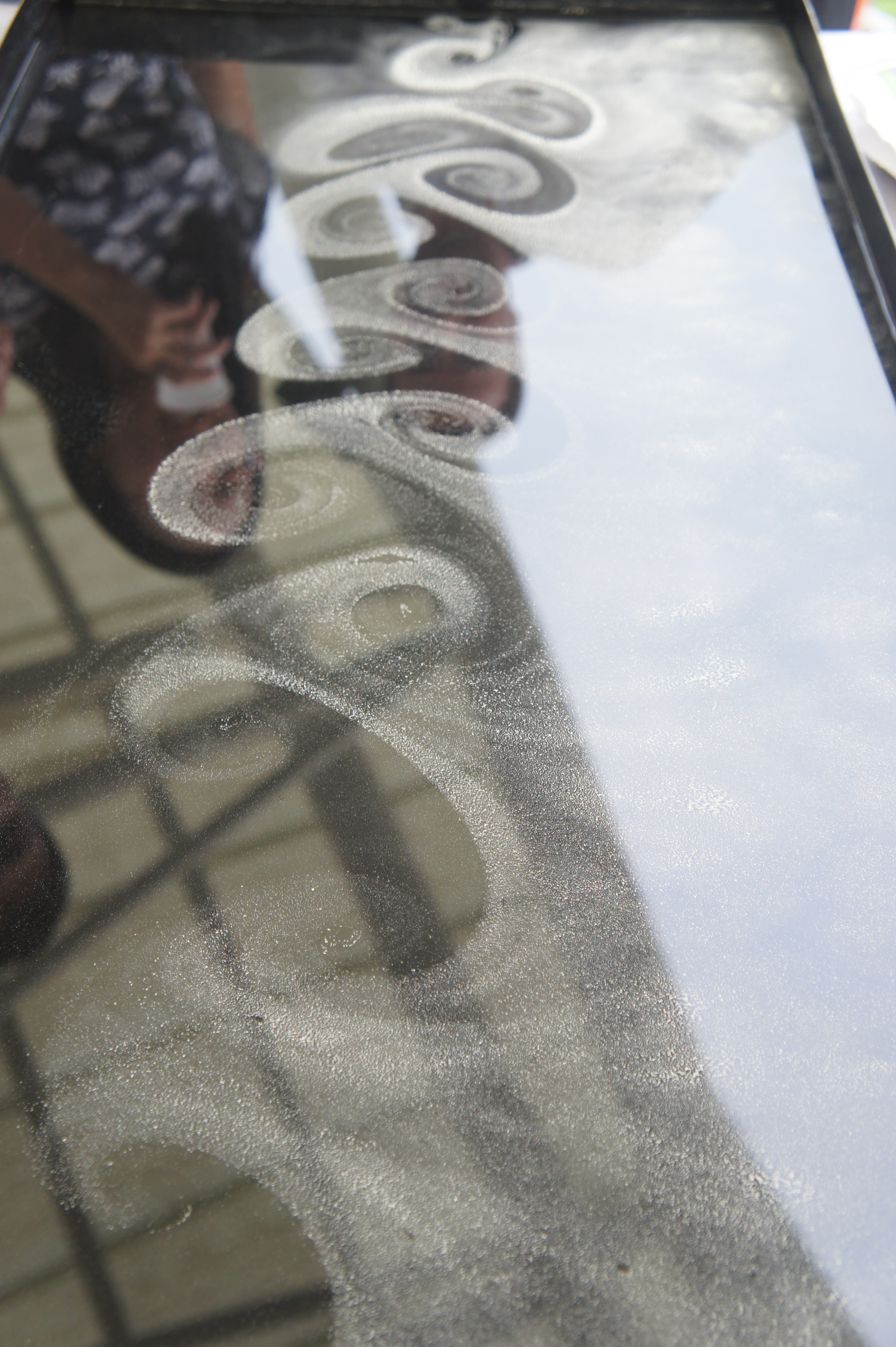 - Một tác phẩm “thư pháp” trên nước với phấn hoa.