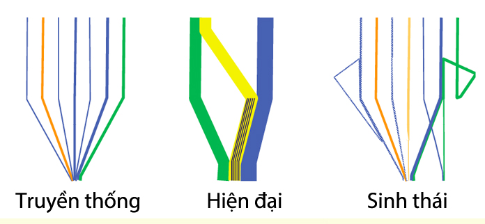 Hình 6: Ba mô hình sử dụng tài nguyên: Truyền thống, Hiện đại, và Sinh thái. Nguồn: (Suzuki, Dastur, Moffatt, Yabuki, & Maruyama, 2010).