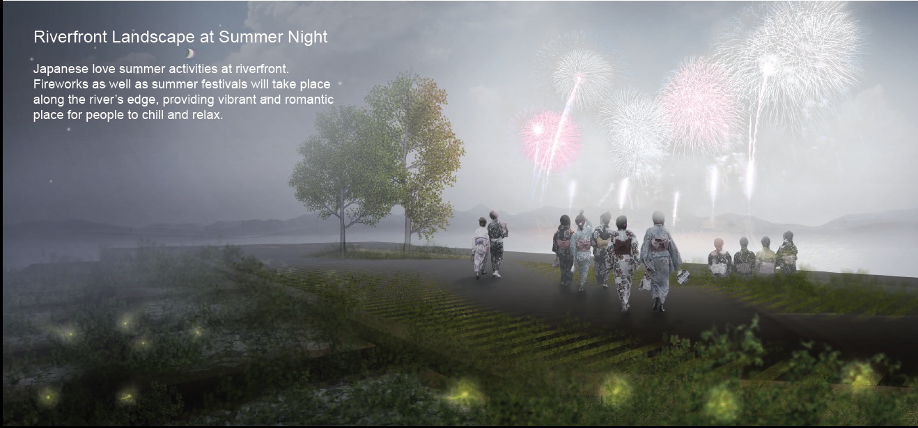Các hoạt động văn hóa đô thị được kết hợp nhuần nhuyễn với hạ tầng phòng chống bão và không gian mặt nước.