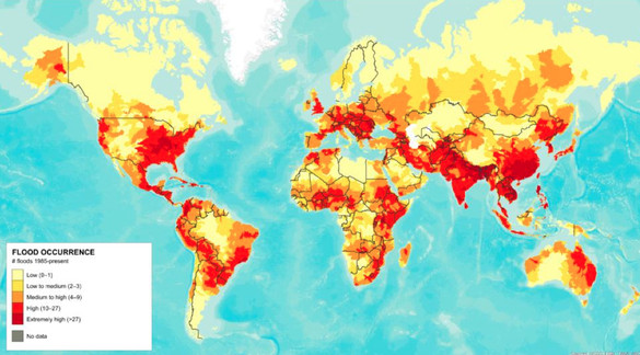 Hình 2: Bản đồ nguy cơ ngập lụt thế giới