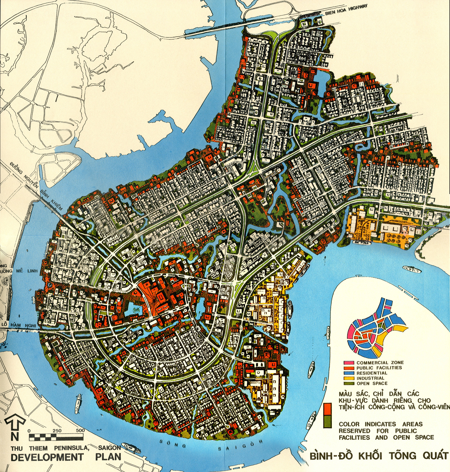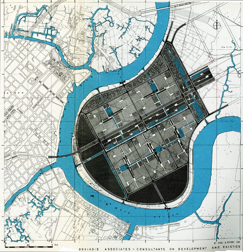 Thiế kế khu đô mới Thủ Thiêm của công ty tư vấn Doxiadis Associates. Nguồn: Doxiadis Associates (1965)
